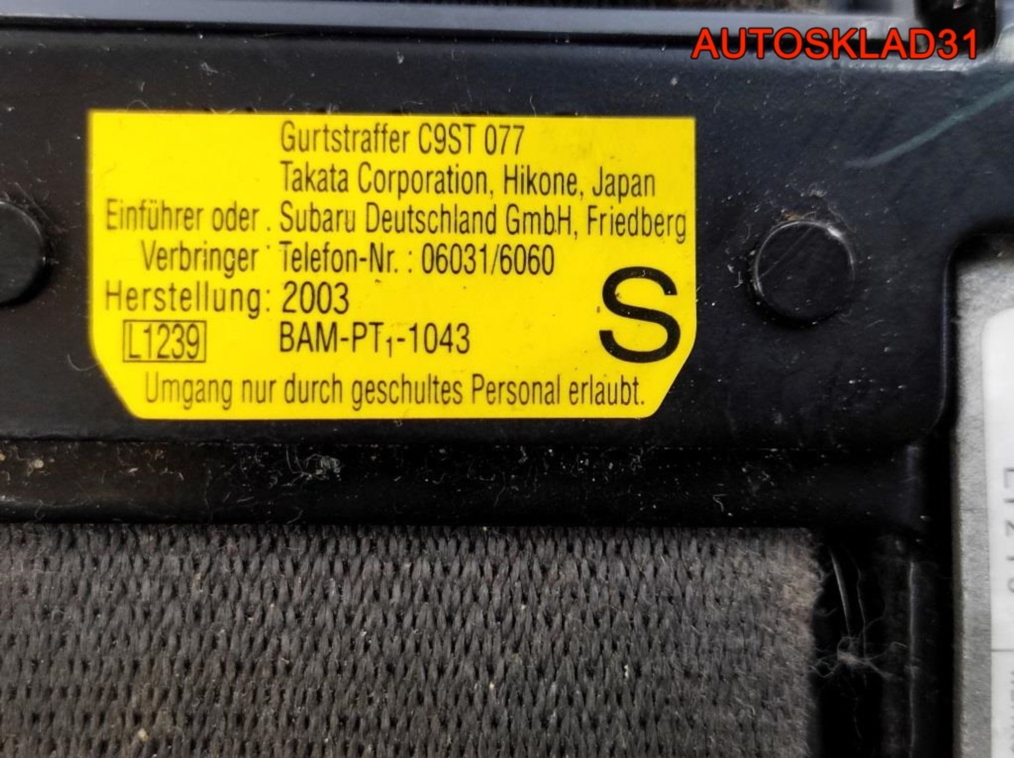 Ремень безопасности передний левый с пиропатроном БУ из Германии для Subaru Impreza (G11) 2000-2007 год, двигатель 2,0 EJ201 Бензин есть, в наличии на складе в Белгороде по адресу: Белгородская область, Белгородский р-н, пос. Дубовое, Заводская ул., 1АК1